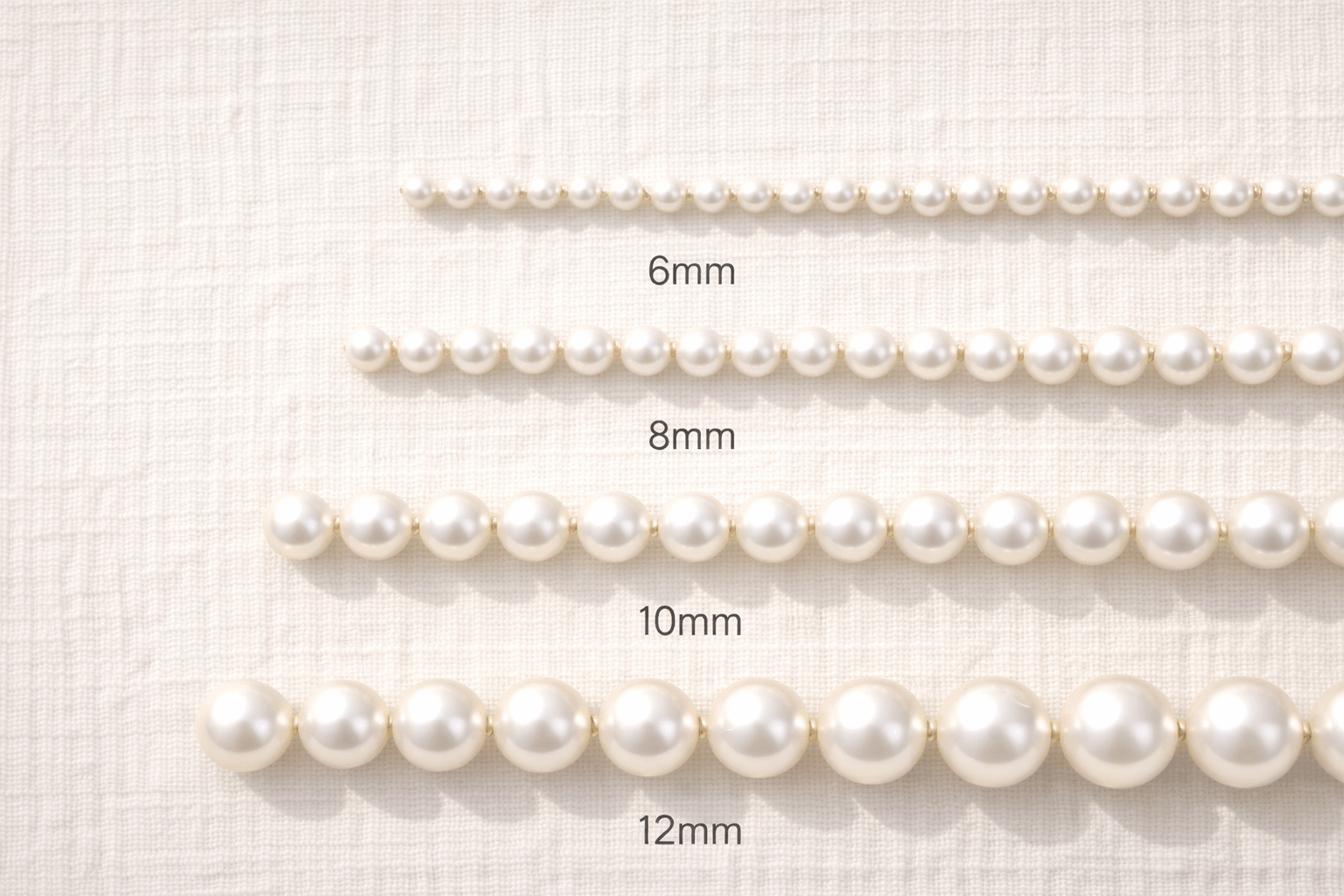 Ambos tipos de perlas se mueven mayoritariamente en rangos pequeños a medianos, lo que las hace versátiles para collares, pulseras y pendientes. Las perlas Akoya suelen ir de 2 mm a unos 9,5 mm, y todo por encima de 9 mm es realmente raro y caro. El punto dulce para la mayoría de las joyas Akoya está en el rango de 7,0–8,5 mm — clásico, elegante, usable a diario.