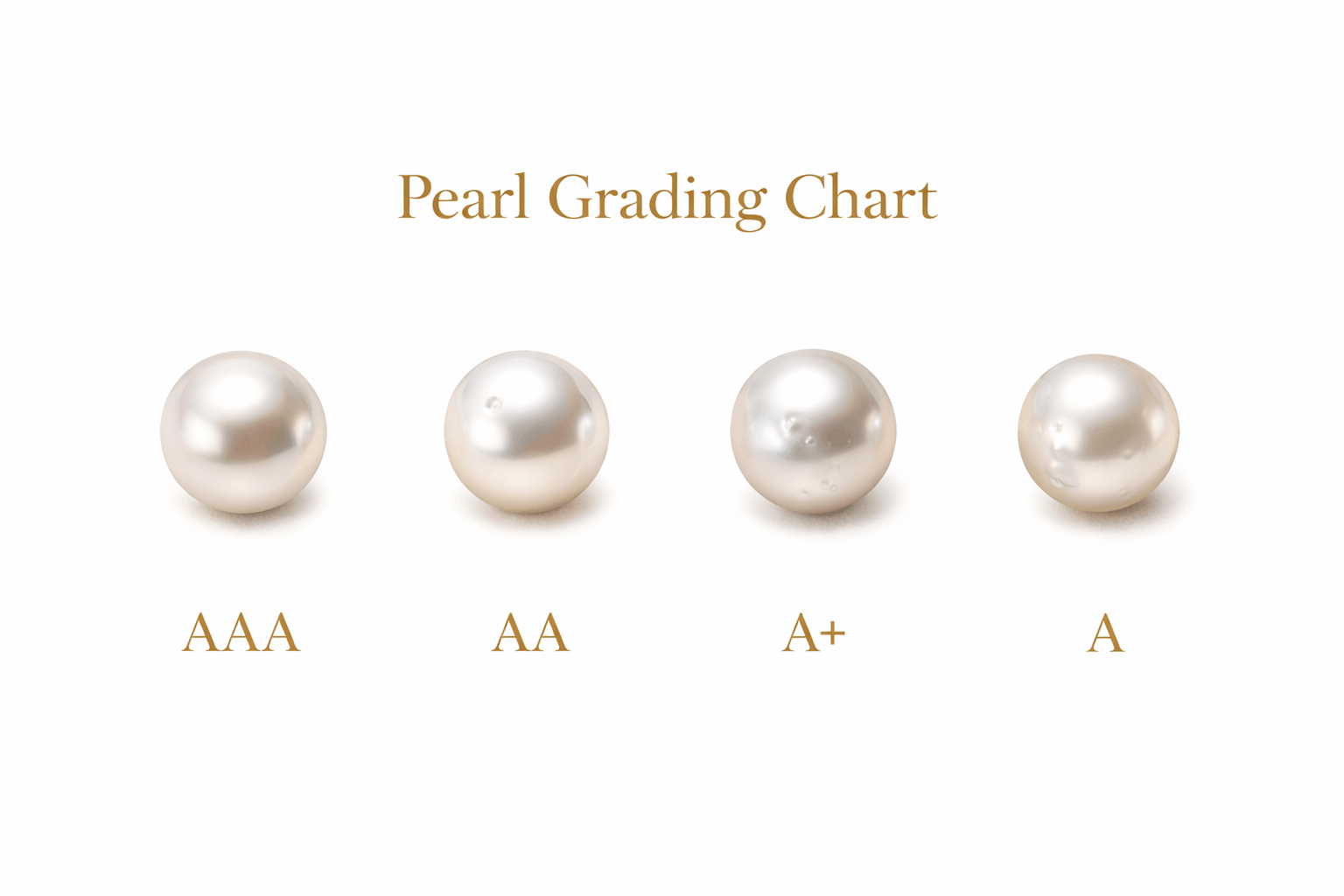 De igual forma, PearlsOnly usa A a AAA para Akoya también. Sin embargo, A a AAAA para agua dulce y exóticas, dando más detalle. El sistema se alinea bastante bien con los siete factores de valor de GIA. Calidad de superficie, brillo, nácar, coincidencia —todo claramente definido. Además, proporcionan especificaciones reales en vez de solo letras. Por eso entiendes qué significan realmente los grados en la práctica.