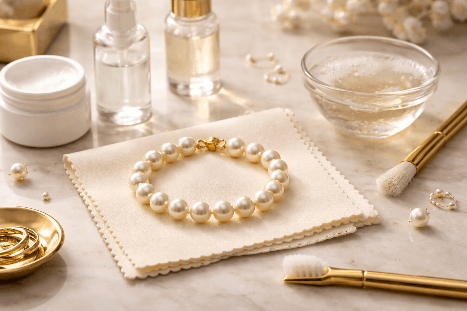 Cuidado de tu pulsera de oro y perlas