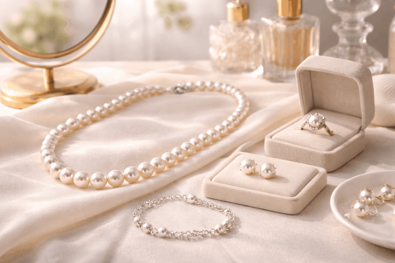Ponte las perlas al final cuando te estés arreglando. Después del maquillaje, laca para el cabello, perfume – todo eso. Esos productos contienen químicos que dañan las perlas con el tiempo si entran en contacto directo. Quítatelas primero al llegar a casa también, antes de lavarte la cara o ponerte crema de noche. Estos hábitos diarios simples significan que necesitarás hacer la lavado real con menos frecuencia. Parte de saber cómo limpiar joyas de perlas en casa es prevenir que se ensucien demasiado desde el principio con hábitos inteligentes de uso y almacenamiento.