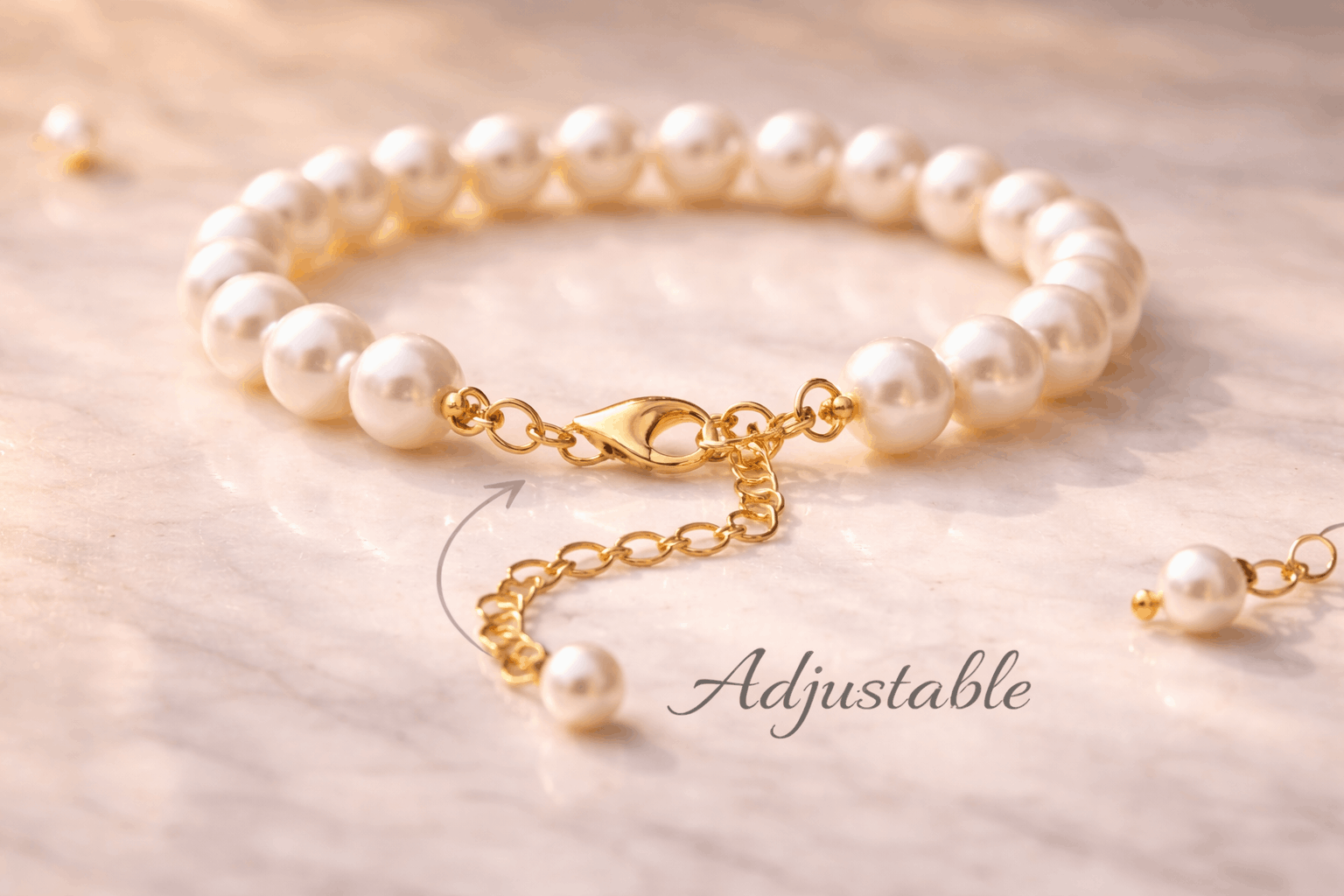 Al pedir a medida, dale al joyero tu medida exacta de muñeca y dile cómo prefieres el ajuste — ajustado, medio o holgado. Menciona también qué tipo de pulsera estás pidiendo. Un joyero que hace un set de joyas de perlas puede ajustar la longitud de la pulsera mientras mantiene el resto estándar. Este consejo de la guía de longitud de pulseras de perlas te ayuda a conseguir exactamente lo que quieres.