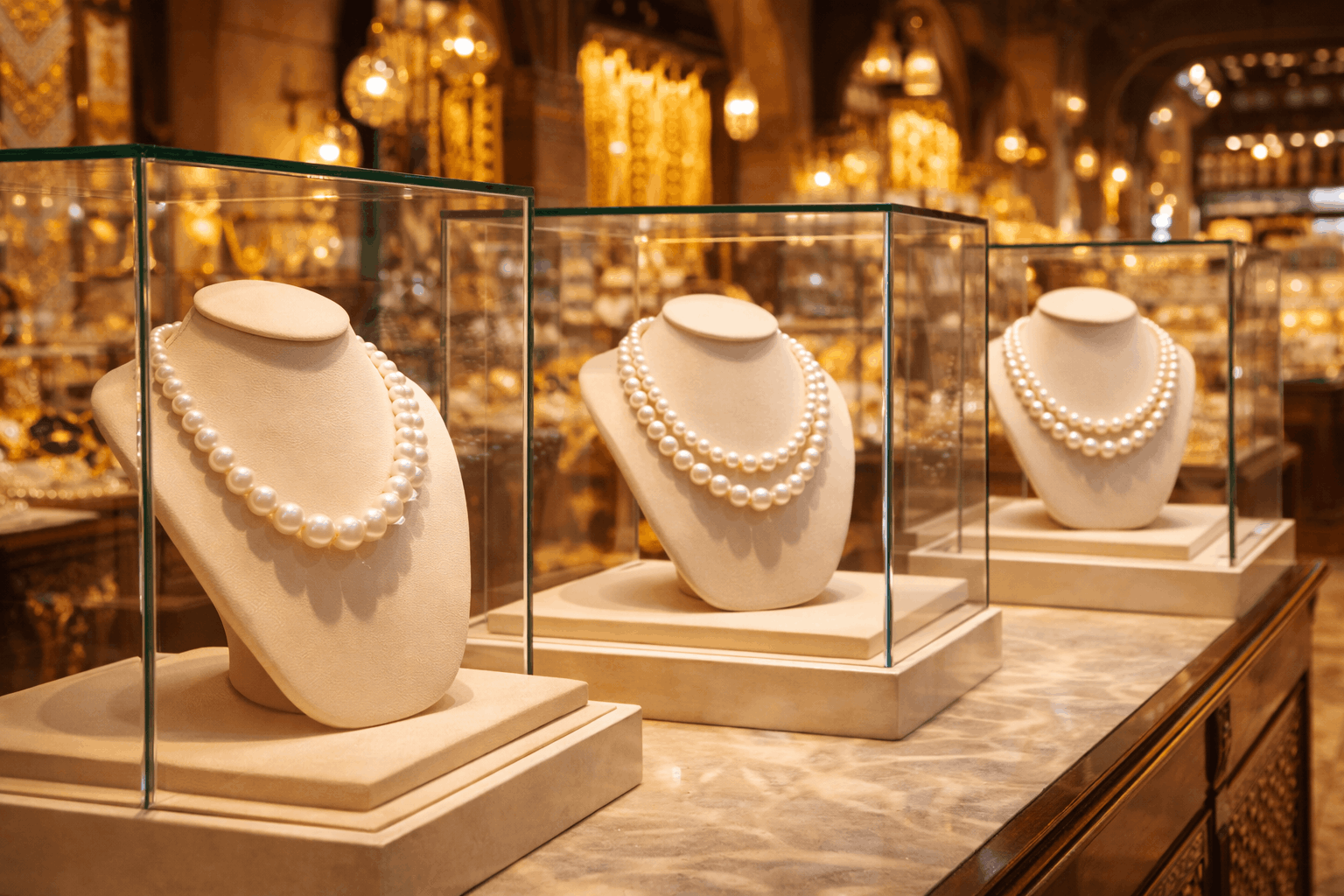 El mercado actual de collares de perlas en los EAU está directamente conectado a esta historia. Por lo tanto, comprar perlas en los Emiratos no es solo ir de compras: es participar en una tradición de siglos. Esa profundidad emocional y cultural hace que el mercado de los EAU sea completamente diferente del shopping de joyería occidental.