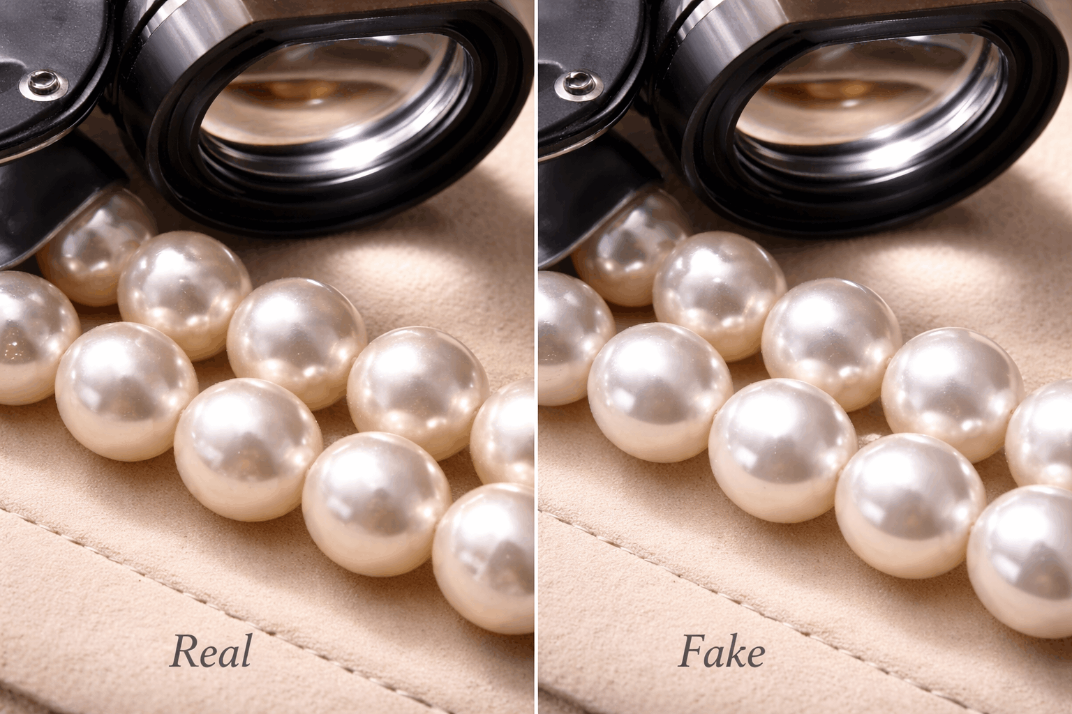 El test de los dientes funciona sorprendentemente bien para una autenticación rápida. Frota suavemente la perla contra tus dientes frontales. Las perlas reales se sienten ligeramente ásperas por la estructura en capas del nácar. Las perlas falsas se sienten lisas como vidrio o plástico. Sí, parece raro, pero es la forma más rápida de pillar falsificaciones obvias.