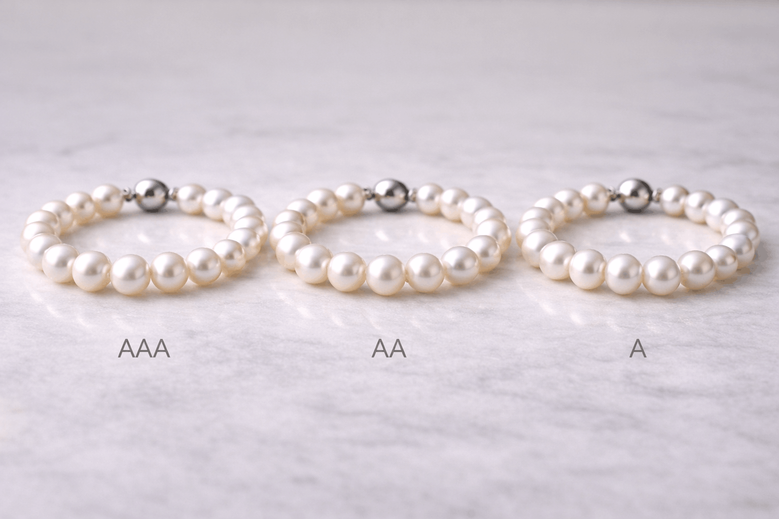 El lustre importa mucho más de lo que la gente cree. Las perlas de alta calidad reflejan la luz hermosamente. Ese brillo característico que todos reconocen. La calidad inferior se ve opaca y sin vida. Sostén la pulsera bajo buena iluminación. ¿Puedes ver reflejos en la superficie de las perlas? Esa calidad de espejo significa lustre real. Además, ese brillo hace que las perlas parezcan caras y valgan la pena usarlas repetidamente.