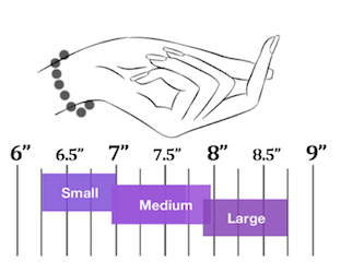 Puedes enrollar la cinta métrica alrededor de tu muñeca, justo debajo del hueso, y medir la longitud. También puedes medir la mano, en su punto más ancho, para asegurarte de que la pulsera no se enrolle. Para pulseras de perlas, añade entre 2,5 y 4,35 cm a tu medida para asegurarte de que la pulsera que compres te quede cómoda.