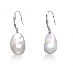 Par de pendientes de perlas Perla Agua Dulce - Edison de calidad AA+ de 14 a 15mm en color Blanco
