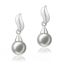 Par de pendientes de perlas Perla Akoya Japonesa de calidad AA de 7 a 8mm en color Blanco