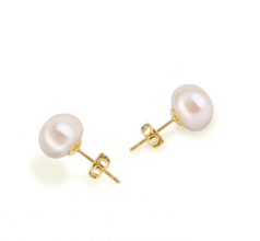 Par de pendientes de perlas Perla de Agua Dulce de calidad AAA de 8 a 9mm en color Blanco