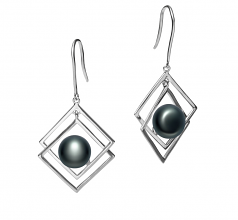 Par de pendientes de perlas Perla de Agua Dulce de calidad AAA de 8 a 9mm en color Negro