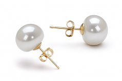 Par de pendientes de perlas Perla de Agua Dulce de calidad AAA de 9 a 10mm en color Blanco