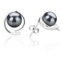 Par de pendientes de perlas Perla de Agua Dulce de calidad AAAA de 7 a 8mm en color Negro