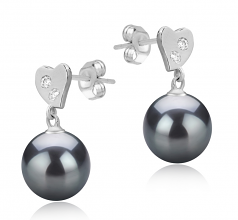 Par de pendientes de perlas Perla de Agua Dulce de calidad AAAA de 8 a 9mm en color Negro